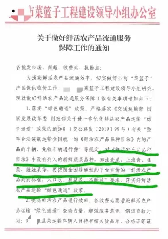 據(jù)全國部分主流官方媒體報道:11月初,中部某地方“菜籃子”工程建設(shè)領(lǐng)導(dǎo)小組辦公室發(fā)出通知,外地車輛運(yùn)輸蔬菜進(jìn)入該城市,非《鮮活農(nóng)產(chǎn)品品種目錄》內(nèi)的蔬菜品種,應(yīng)按照國家關(guān)于鮮活農(nóng)產(chǎn)品判別標(biāo)準(zhǔn),享受鮮活農(nóng)產(chǎn)品運(yùn)輸“綠色通道”政策,免收車輛通行費(fèi)。