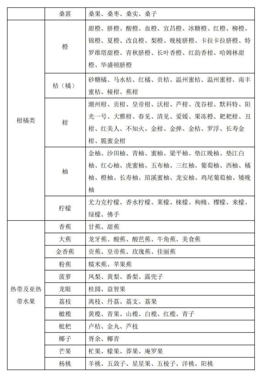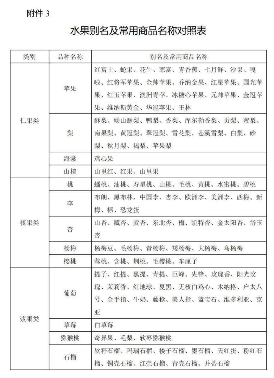 3、水果別名及常用商品名稱對照表
